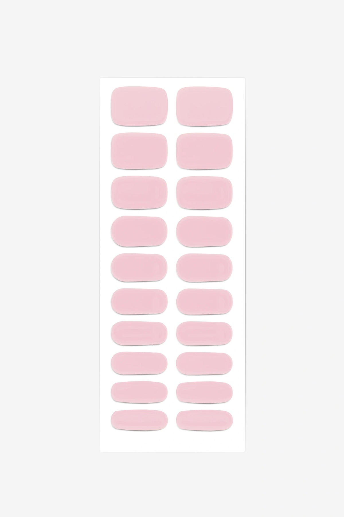Full sheet of Candyfloss Pink semi-cured gel nail stickers displaying various sizes on a white background.