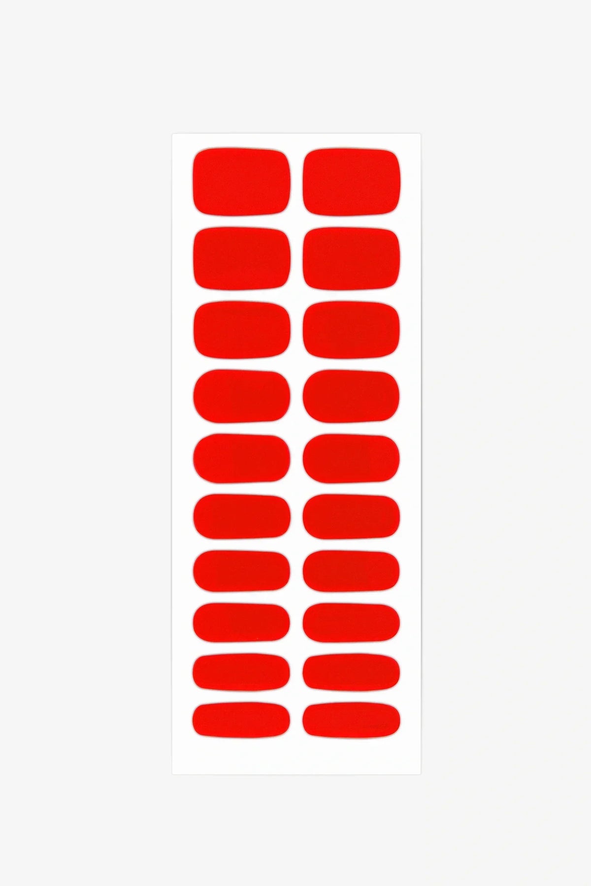 Bold, striking red gel nail wraps with a vibrant, glossy glow.