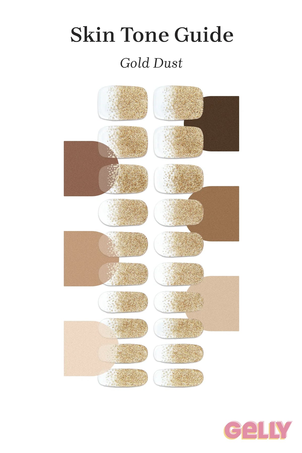 A transparent base with a soft ombré fade into fine gold glitter. The high-gloss finish adds the final punch to one of our best-selling semi-cured gel nail strips.