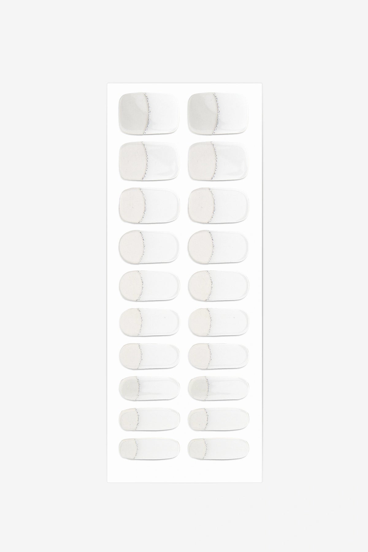 French gel nail wraps witha soft white base and fine silver glitter along the moons, finished in high gloss.