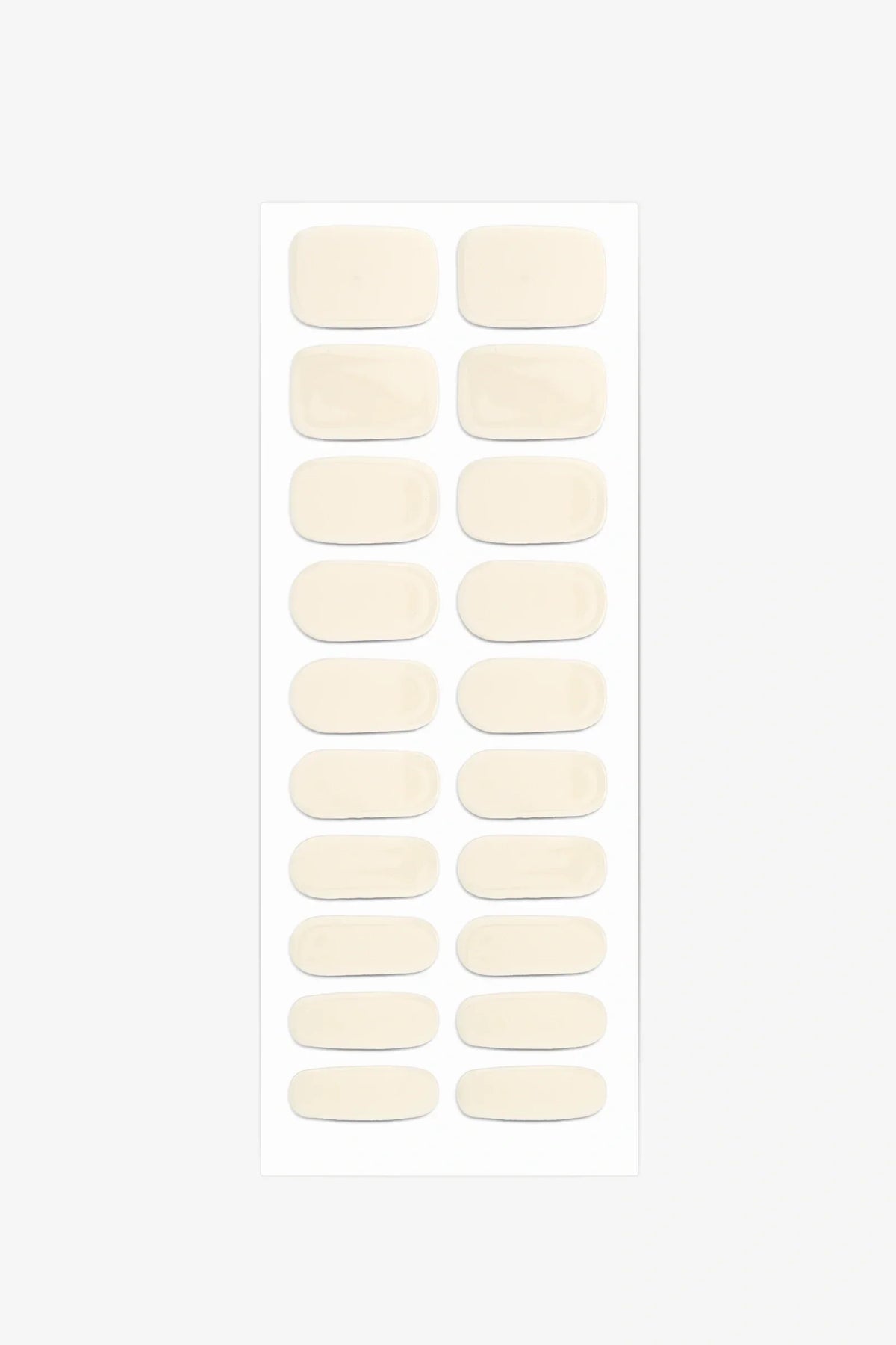 Soft almond cream gel nail wraps with a smooth, milky finish and a warm gloss.