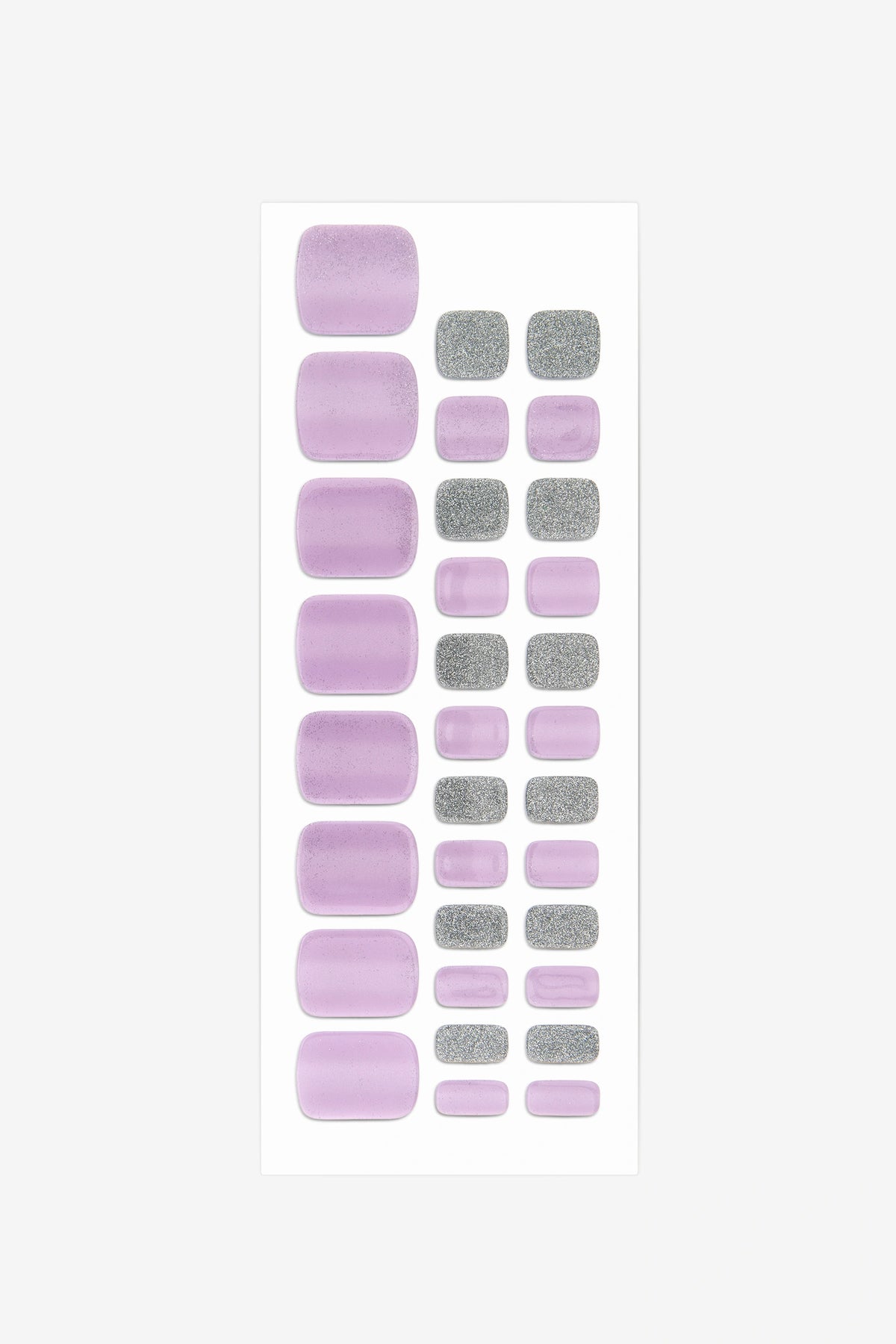 Shimmering lavender and gray gel toenail wraps with a soft cat-eye sheen. The subtle sparkle adds depth to this cool-toned, high-gloss gel pedi.