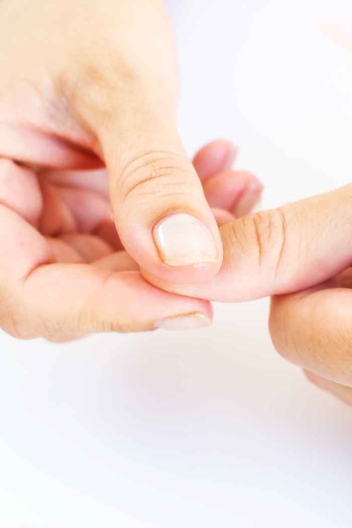Gently push back your cuticles. Clear edges help your strips stay put.