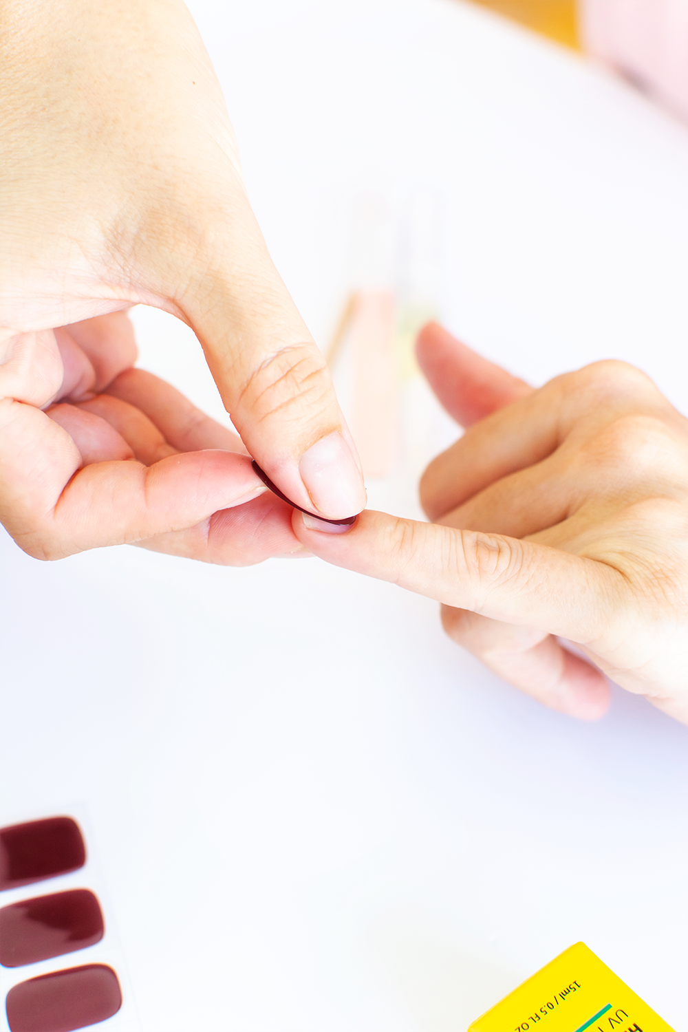 Set the sticker just above your cuticle, not touching it. This helps prevent lifting as your nails grow.