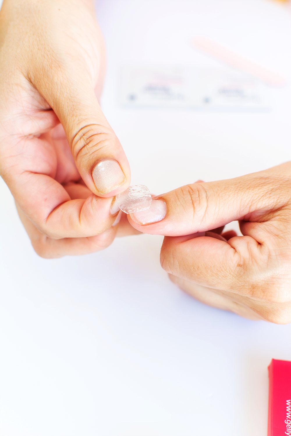 Wipe each nail with the included alcohol pad to remove any leftover adhesive. This leaves your nails fresh and ready for your next set.